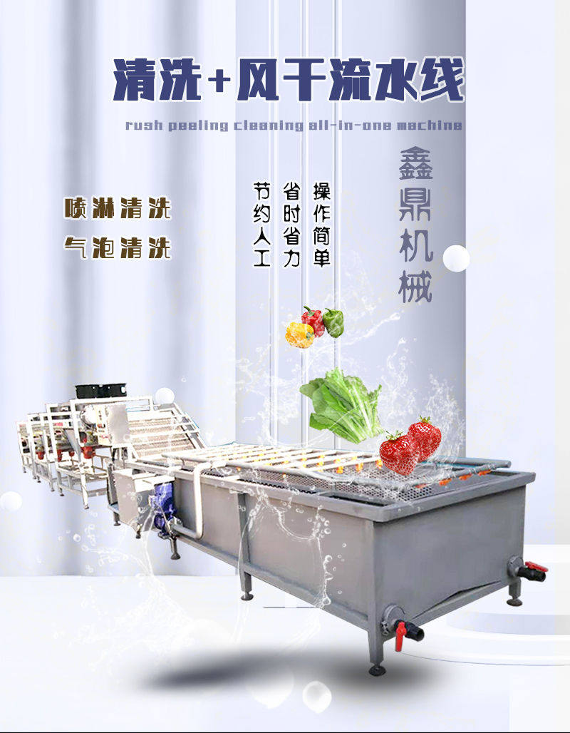 气泡清洗机主要用于绿叶蔬菜的清洗,可分阶段清洗,分别去除泥沙、杂物、漂洗等,去杂洗净度高,能保持原有色泽。气泡清洗机是大枣,蔬菜,豆芽,水产生产线中的重要产品,主要用于大枣,蔬菜,水产的清洗。气泡清洗机的原理主要是利用箱体前部分设备箱体中注适量的水,原料在经过箱体时,会与气泡机和水的结合作用下做翻滚状态,并随网带不断向前推进,在出水面时,高端设有喷淋头,高压冲洗。